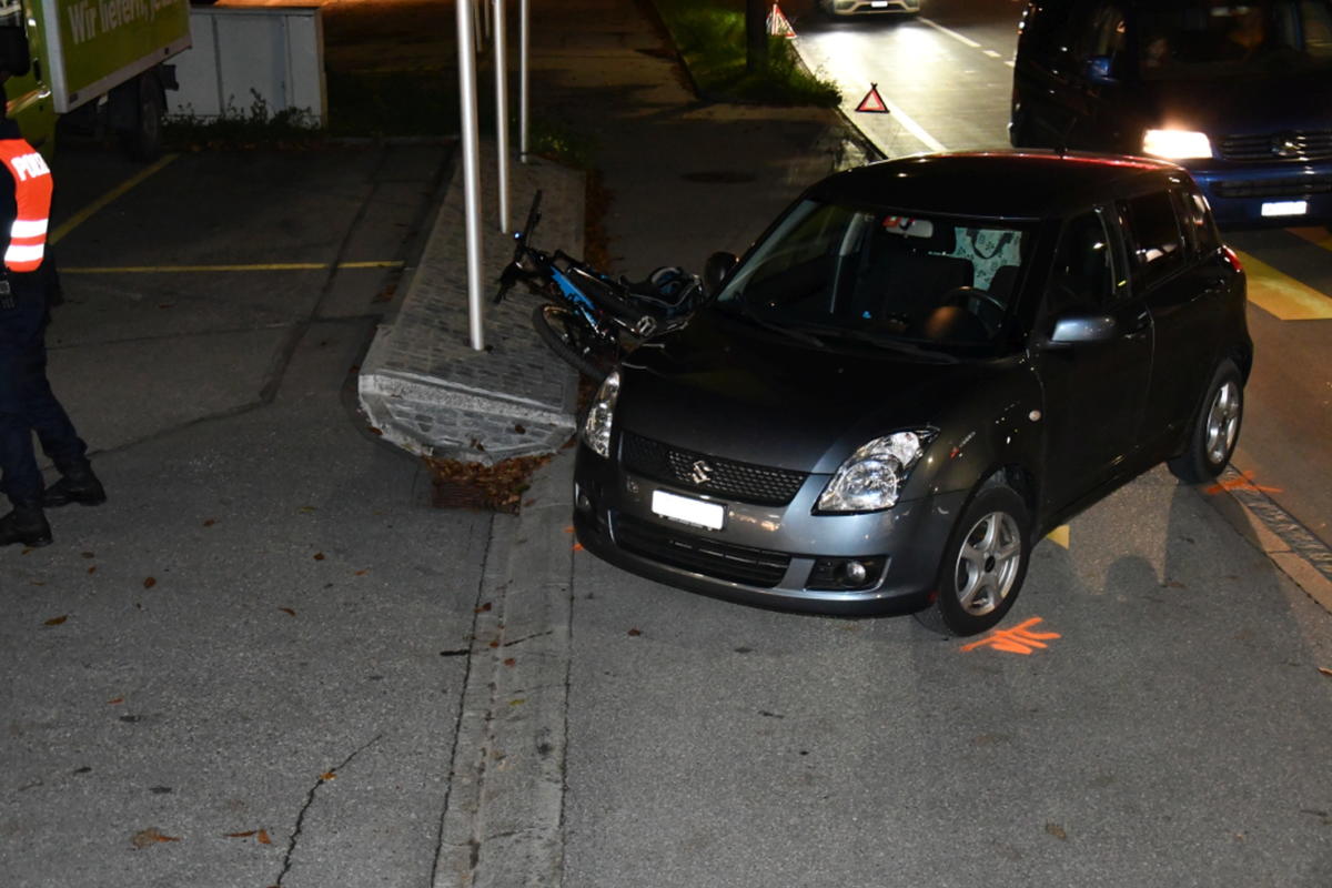 Die 41-jährige Personenwagenlenkerin fuhr um 18.35 Uhr von der Oberen Au herkommend über die Rossbodenstrasse in Richtung Sommeraustrasse und bog nach rechts auf einen Parkplatz ab. Dabei kam es mit dem auf dem linken Radstreifen der Rossbodenstrasse in Richtung Obere Au fahrenden, 40-jährigen E-Bikefahrer zur Kollision. Der E-Bikefahrer stürzte und verletzte sich leicht. An beiden Fahrzeugen entstand geringer Sachschaden.